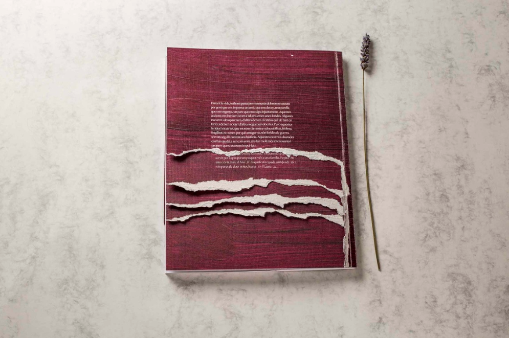 Esquerdades és una autopublicació que recull una entrevista a una familia sobre les seves ferides emocionals, il·lustrada per 48 collages i dissenyada amb molta cura.